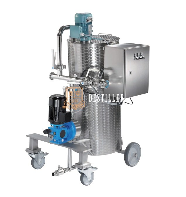 Urządzenie KIESEL Claring zostało zaprojektowane specjalnie do przygotowywania i dozowania środków klarujących, enzymów i ziemi okrzemkowej. To kompaktowe urządzenie spełnia wszystkie wymagania dotyczące przygotowania roztworu w zbiorniku, aż do dozowania żądanej ilości. Pojemność zbiornika można dobierać w zależności od potrzeb i zastosowania. Konstrukcja mobilna wykonana jest ze stali nierdzewnej, składa się z zamkniętego, cylindrycznego zbiornika, wyposażonego we wziernik, zawór odcinający, mieszadło i pompę dozującą.