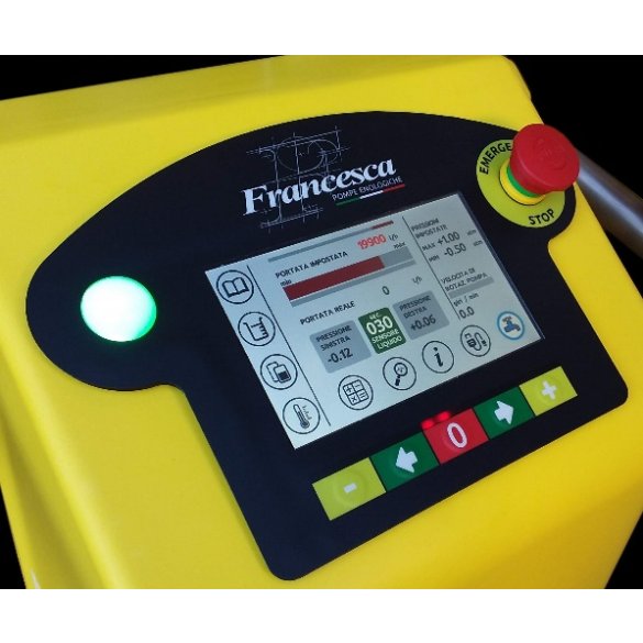 Opatentowana pompa enologiczna z gumowymi krzywkami, samozasysająca pompa sucha do -8,5 metra, z ręczną i automatyczną zmianą natężenia przepływu. Części mające styczność z cieczą wykonane w całości ze stali nierdzewnej AISI 304 i 316. Doskonale nadaje się do pracy w winiarniach: transport odszypułkowanych winogron, moszczu i wina, przepompowywanie, filtracja, butelkowanie, przepuszczanie przez wymiennik ciepła. Optymalna do napełniania i opróżniania beczek. Łatwo zmywalna i sterylizowalna, pozwala na dokładną, całkowitą kontrolę części mających styczność z produktem. Bardzo niska prędkość obrotowa wirnika.