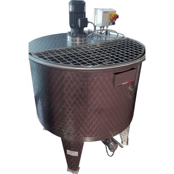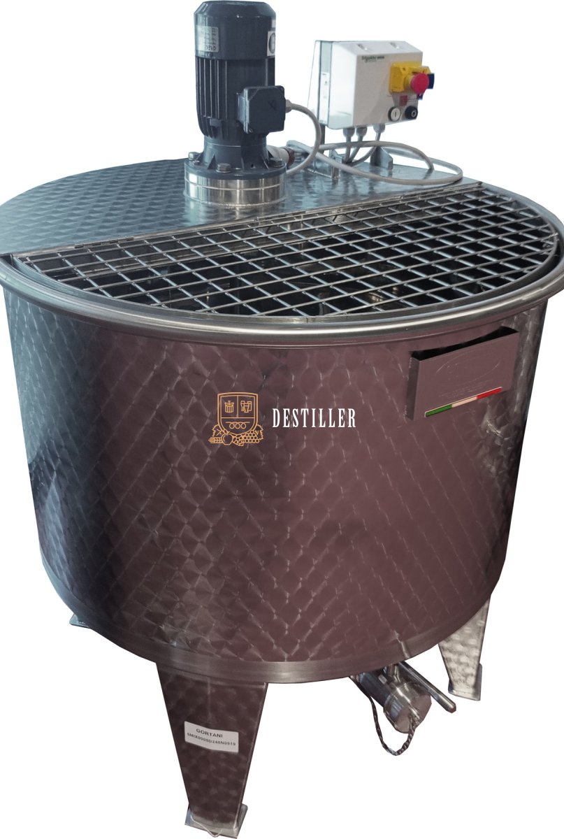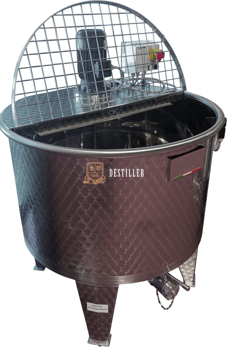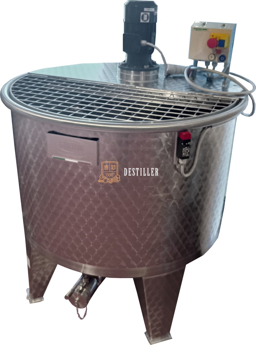 Wysokiej jakości zbiornik ze stali nierdzewnej AISI 304 z mieszadłem górnym stworzony z myślą o winiarniach, tłoczniach soków, itd.
